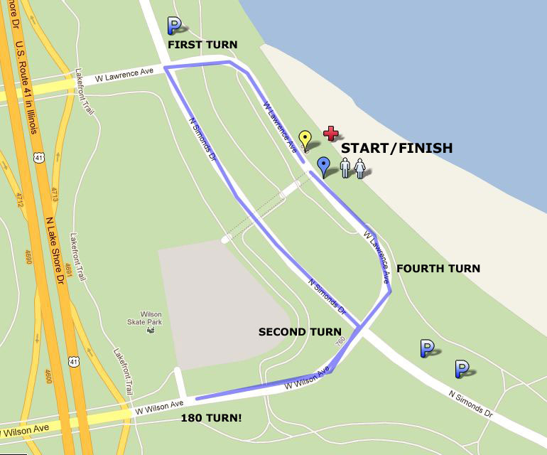 I had pre-ridden the course on Thursday with my old pal Annette and it had been incredibly windy. The weather report called for 9mph on this Sunday, but as the weatherman often lies, the wind felt more about 15-18mph. The cold gusts would definitely be a factor in the stretch to the finish line. The course was more interesting than the only other place I’ve done a crit – Calumet Park for the Half Acre Gaper’s Block crits. I figured the 180 degree turn would break up the pack more, but Sue Wellinghoff said she thought it worked as an equalizer, because it slowed everyone down (full article). Regardless, it would take more skill and calculation than the easy corners I had seen at Calumet Park. I was intimidated by the prospects.